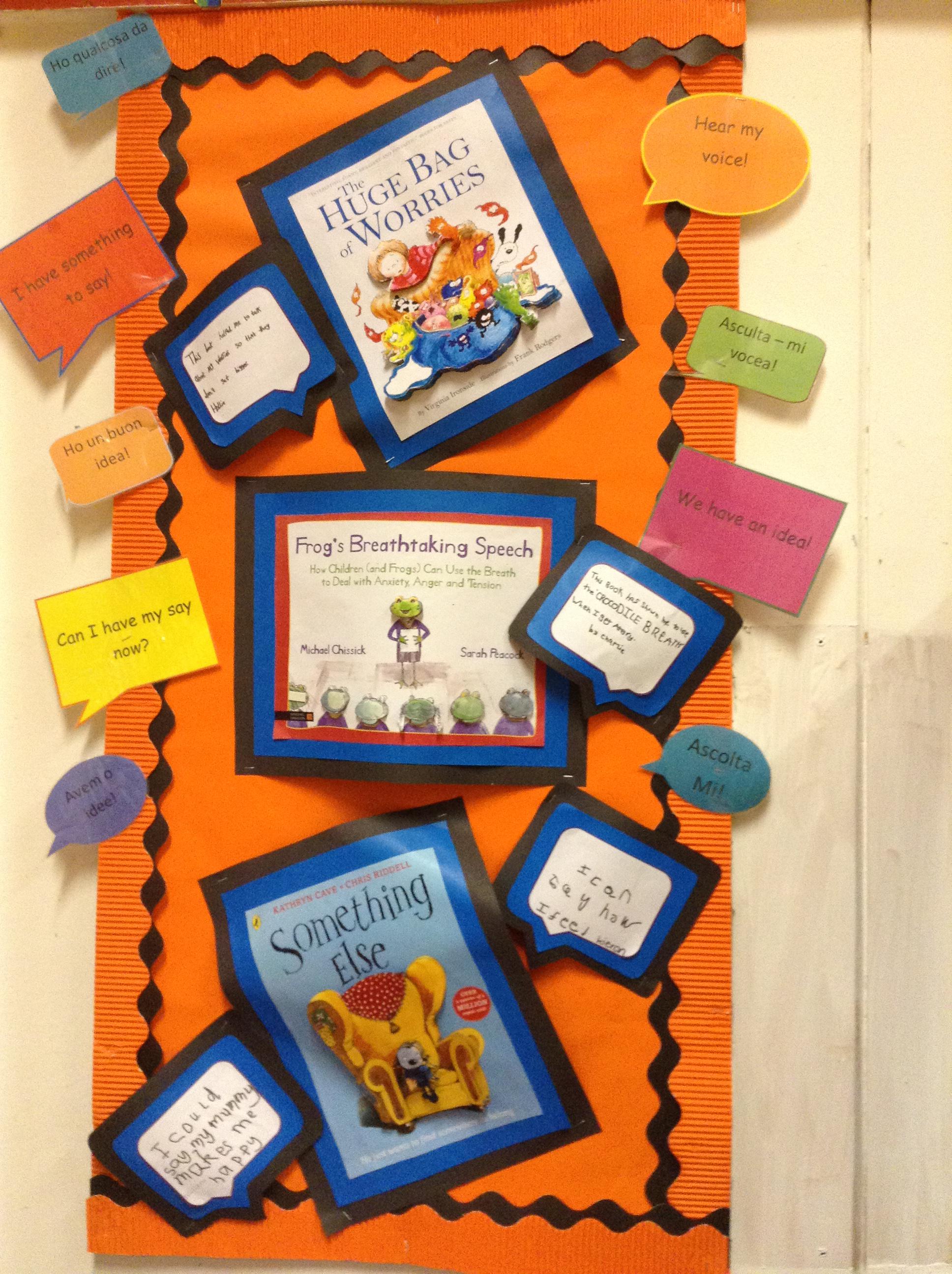 All staff are encouraged to listen to children and allow them to express how they feel. We understand that not all children can regulate their emotions or make sense of their experiences. We can offer more intensive support if needed and have a great range of resources that we can share with you and your child. We have books, activities and stories that can help children discuss and understand that some of their feelings are normal. Please do pop in and ask to see what we have.
